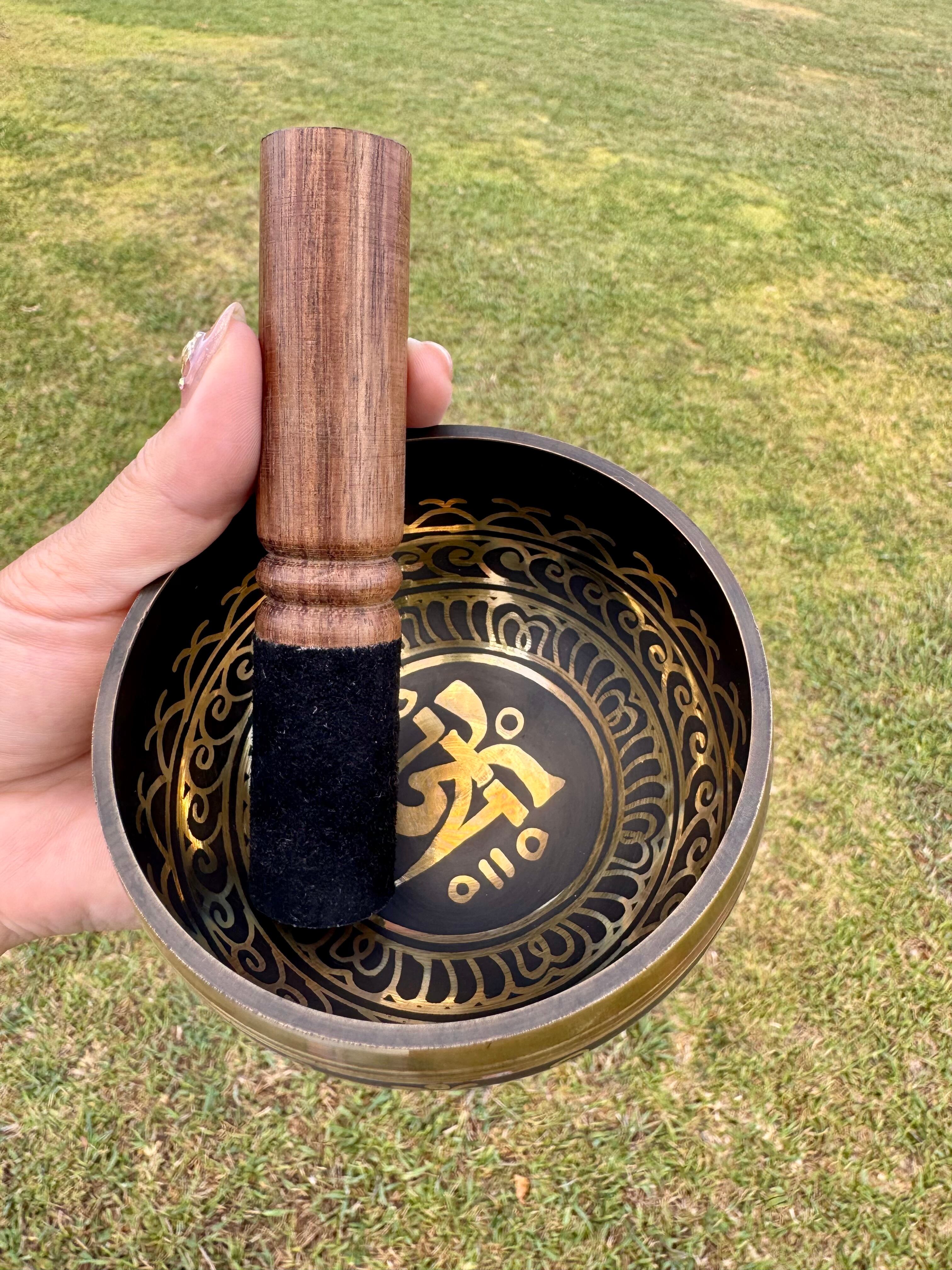 木製スティックでやさしく叩いたり、縁を滑らせたりすると、澄んだ音色と豊かな倍音が広がり、心身を深くリラックスへと導きます。
