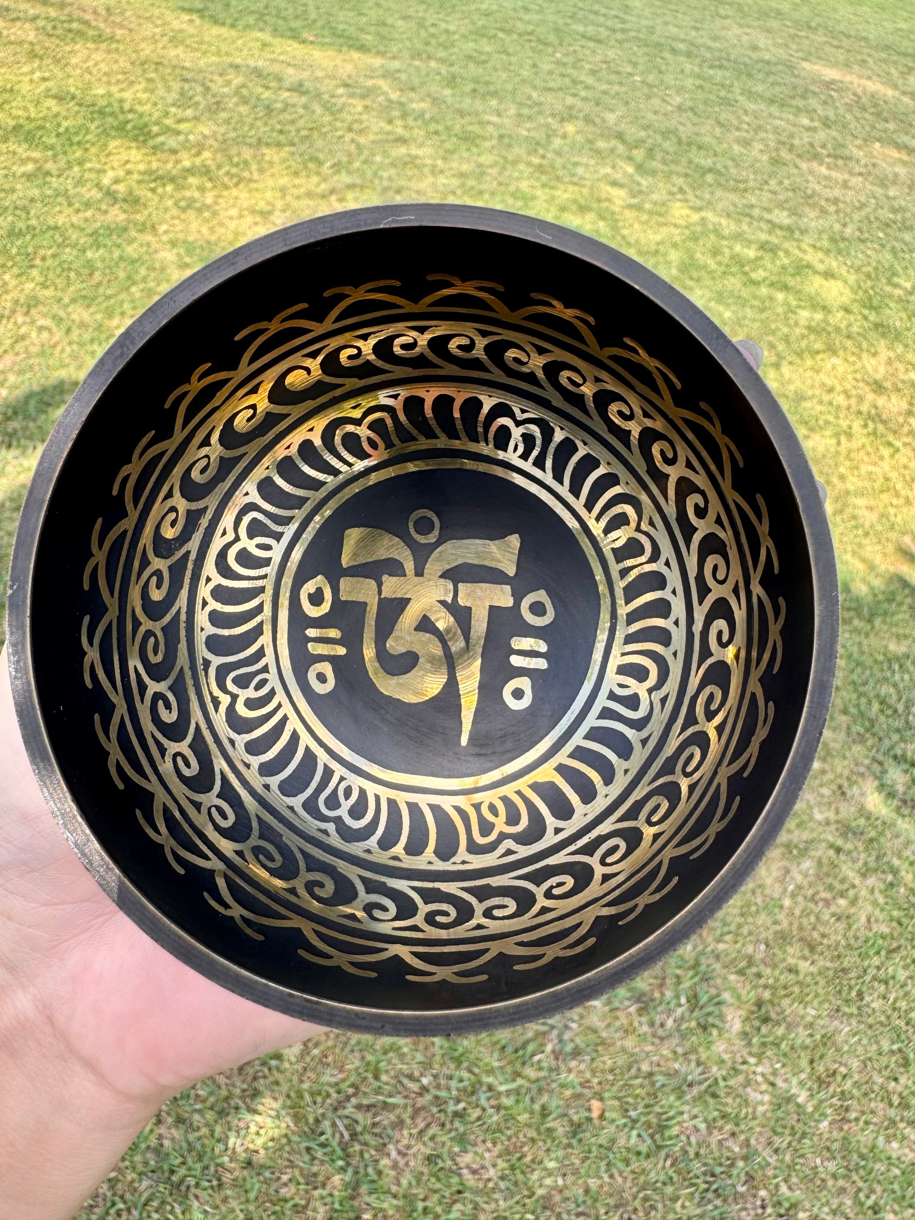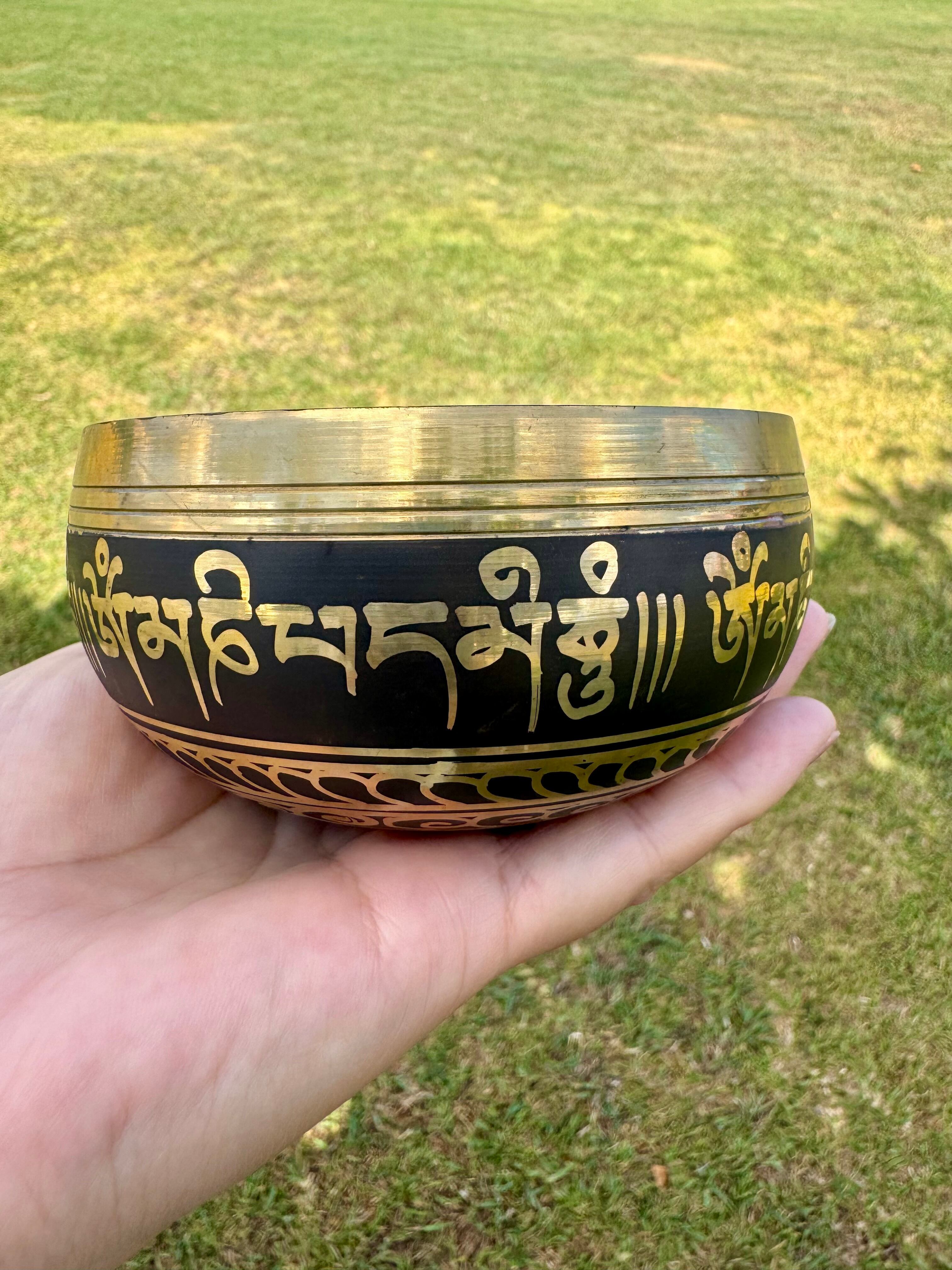 こちらは、美しい装飾を施したボウルに加え、木製スティック・クッション・持ち運びにも便利な専用袋が揃った4点セット。